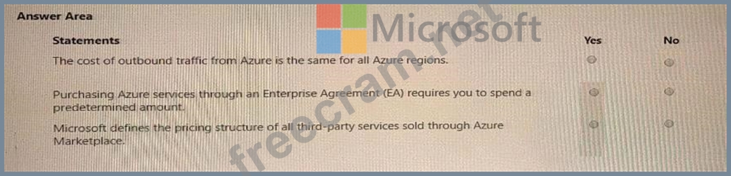 For each of the following statements, select Yes if the statement is true. Otherwise, select No. NOTE: Each correct selection is worth one point.