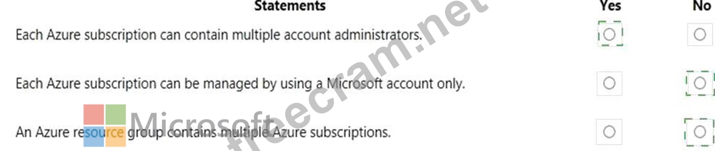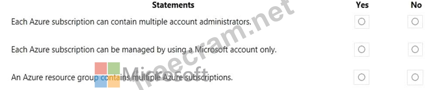 For each of the following statements, select Yes if the statement is true. Otherwise, select No.