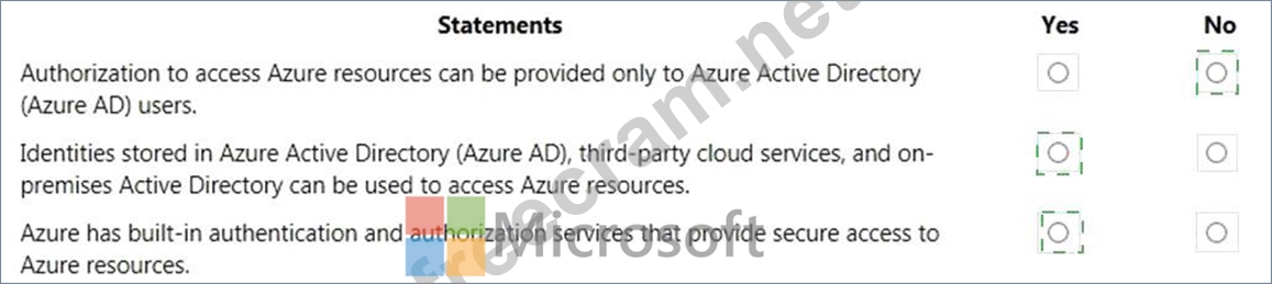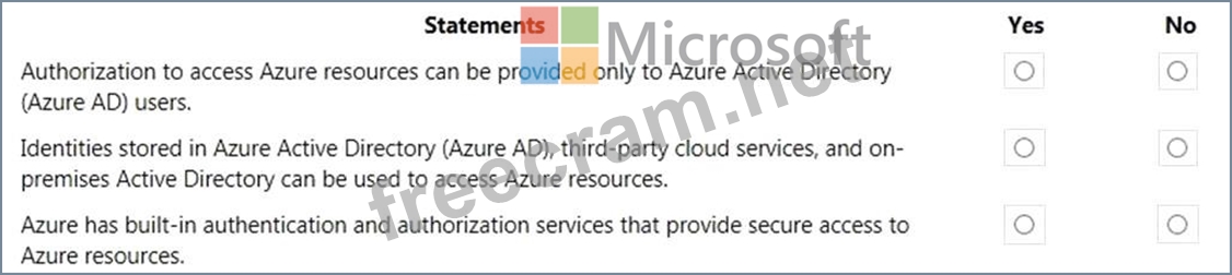 For each of the following statements, select Yes if the statement is true. Otherwise, select No.