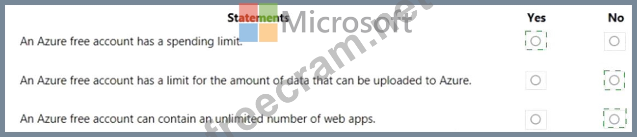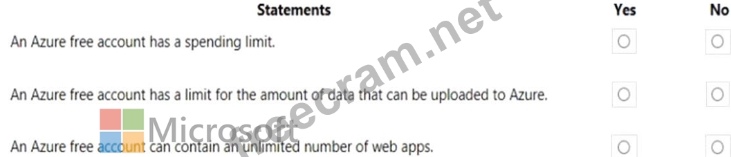 For each of the following statements, select Yes if the statement is true. Otherwise, select No.