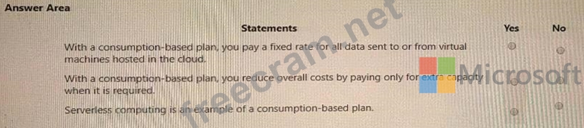 For each of the following statements, select Yes if the statement is true. Otherwise, select No. NOTE: Each correct selection is worth one point.