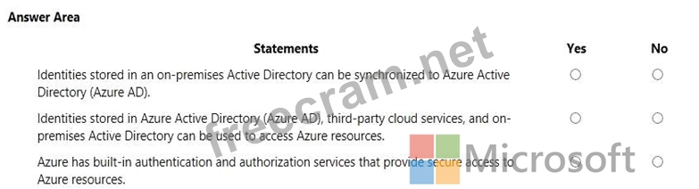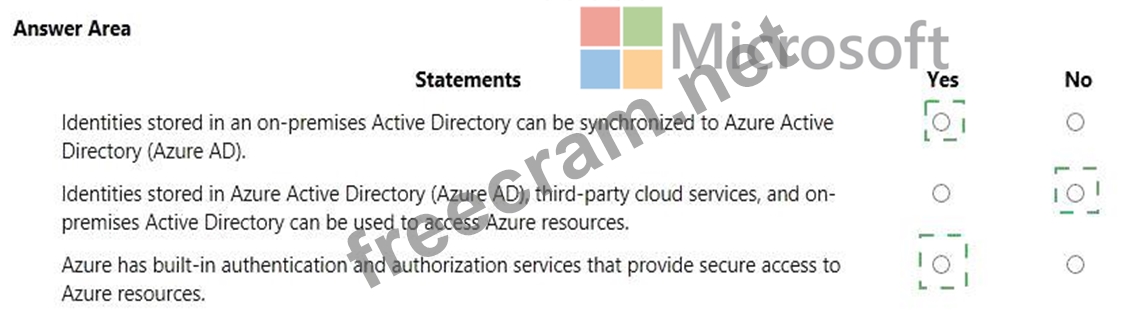 For each of the following statements, select Yes if the statement is true. Otherwise, select No. NOTE: Each correct selection is worth one point.