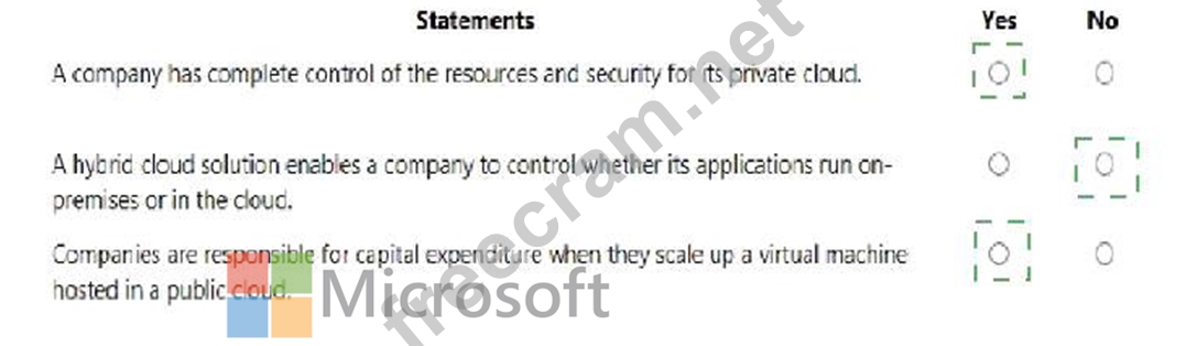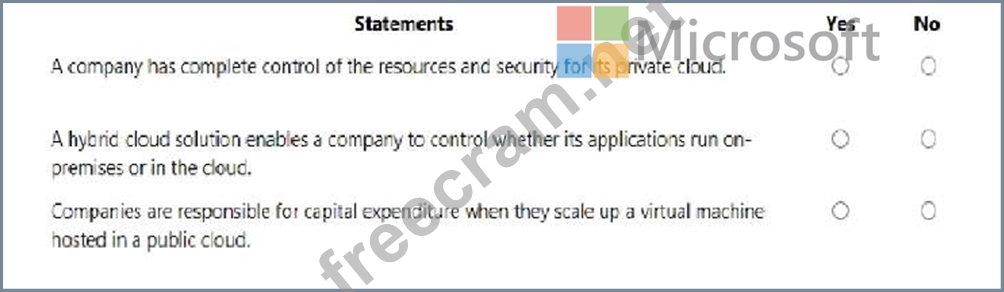For each of the following statements, select Yes if the statement is true. Otherwise, select No.