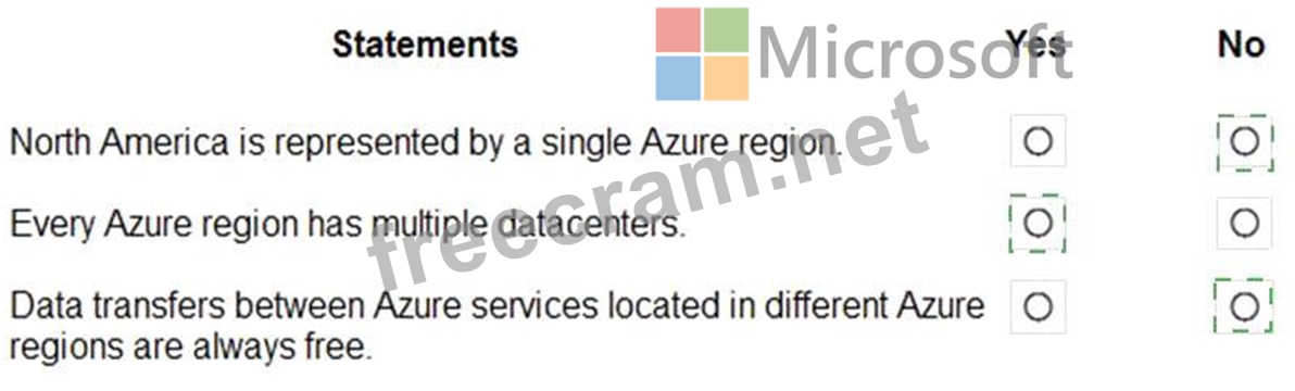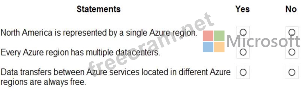 For each of the following statements, select Yes if the statement is true. Otherwise, select No.