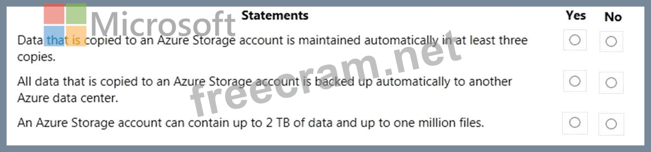 For each of the following statements, select Yes if the statement is true. Otherwise, select No.