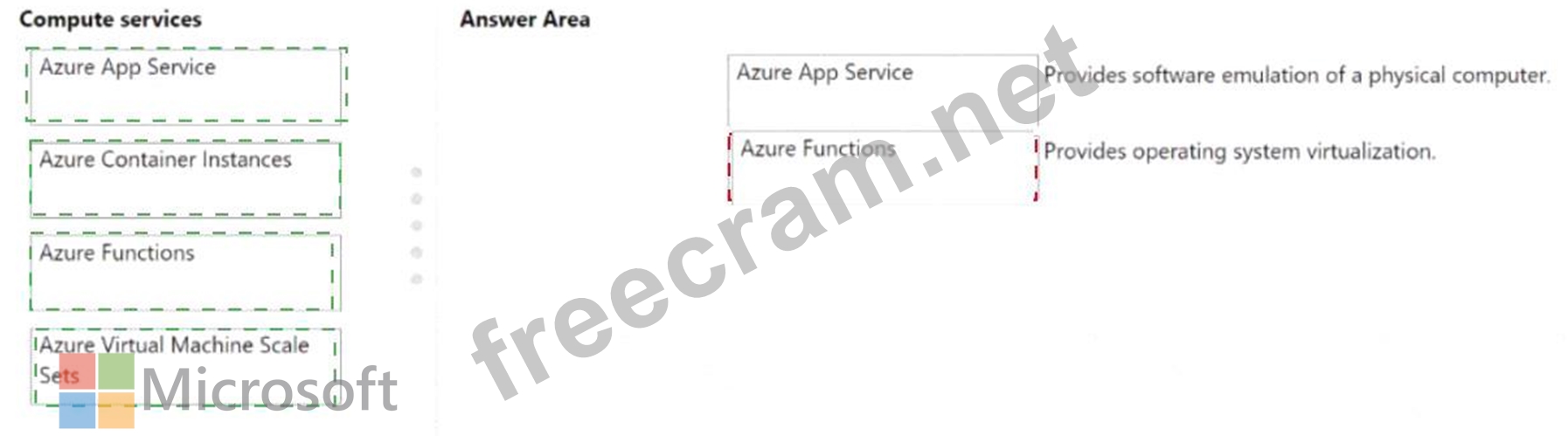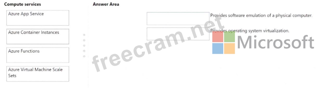 To answer, drag the appropriate compute service from the column on the left to its description on the right Each service may be used once, more than once, or not at all.