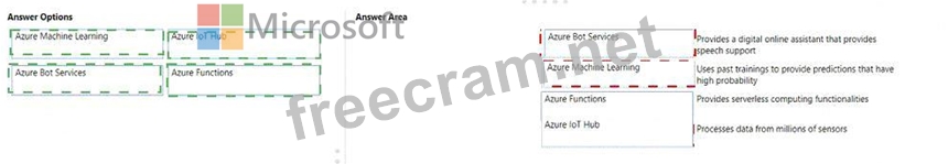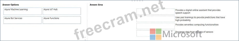 Instructions: To answer, drag the appropriate Azure service from the column on the left to its description on the right. Each service may be used once, more than once, or not at all NOTE: Each correct match is worth one point.