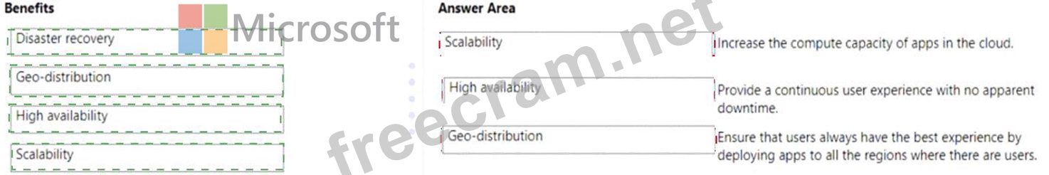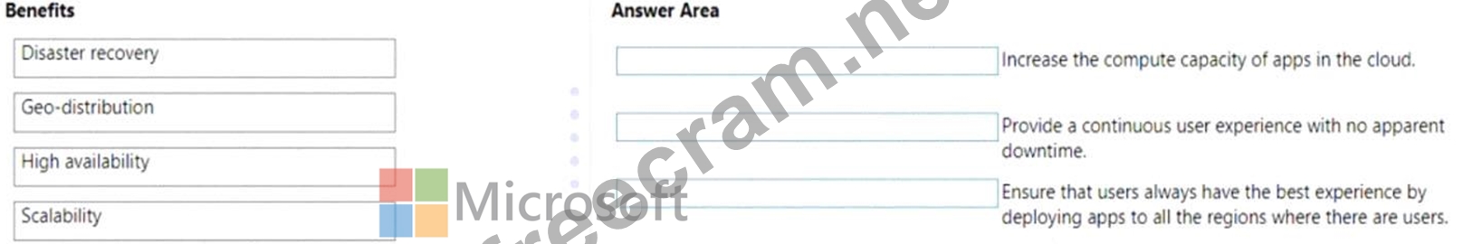 To answer, drag the appropriate benefit from the column on the left to its description on the right. Each benefit may be used once, more than once, or not at all.