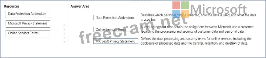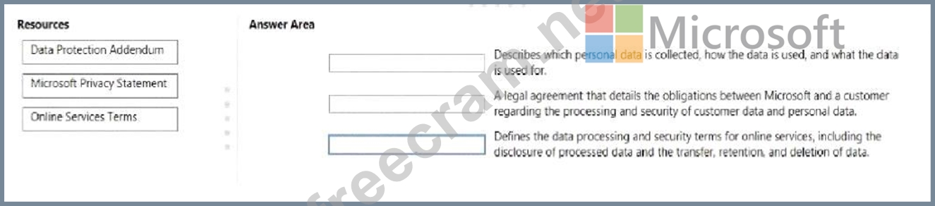 To answer, drag the appropriate resource from the column on the left to its description on the right, Each resource may be used once, more than once, or not at all, NOTE: Each correct match is worth one point.