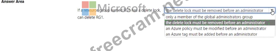 Question 24: You create a resource group named RG1 in Azure Resource Mana...