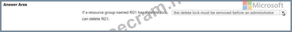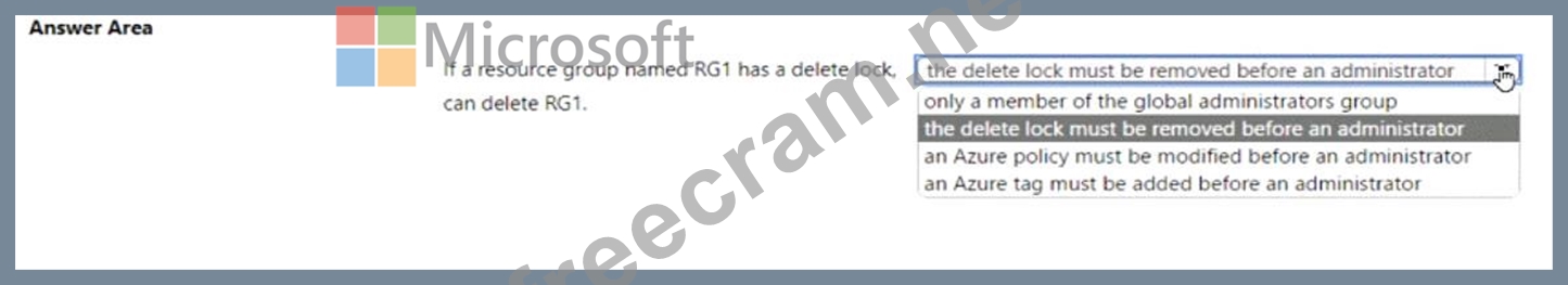 Question 209: You create a resource group named RG1 in Azure Resource Mana...