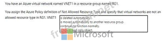 Question 209: You create a resource group named RG1 in Azure Resource Mana...