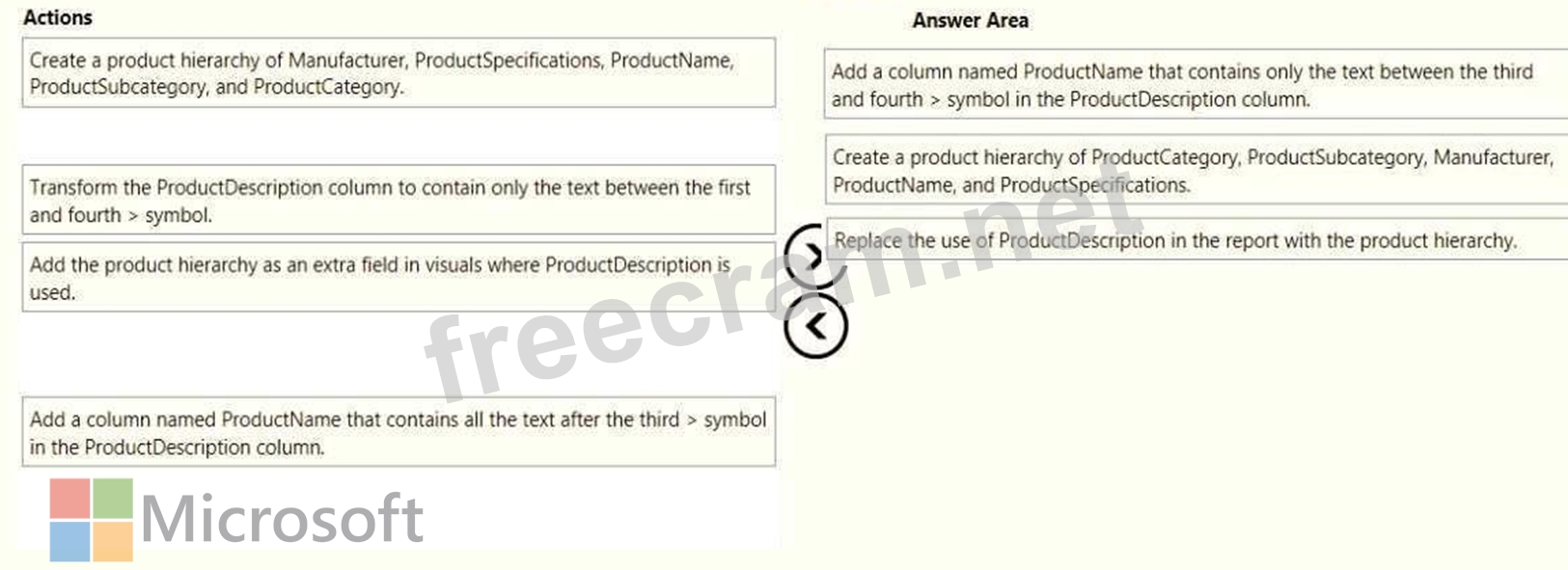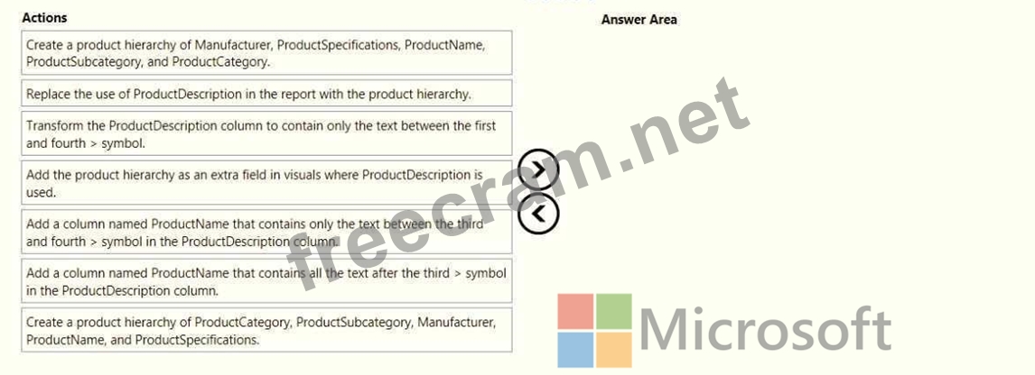 Warehouse managers report that it is difficult to use the report because the report uses only the product name in tables and visuals. The product name is contained within the ProductDescription column and is always the fourth value.