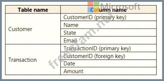 You build a report to analyze customer transactions from a database that contains the tables shown in the following table.