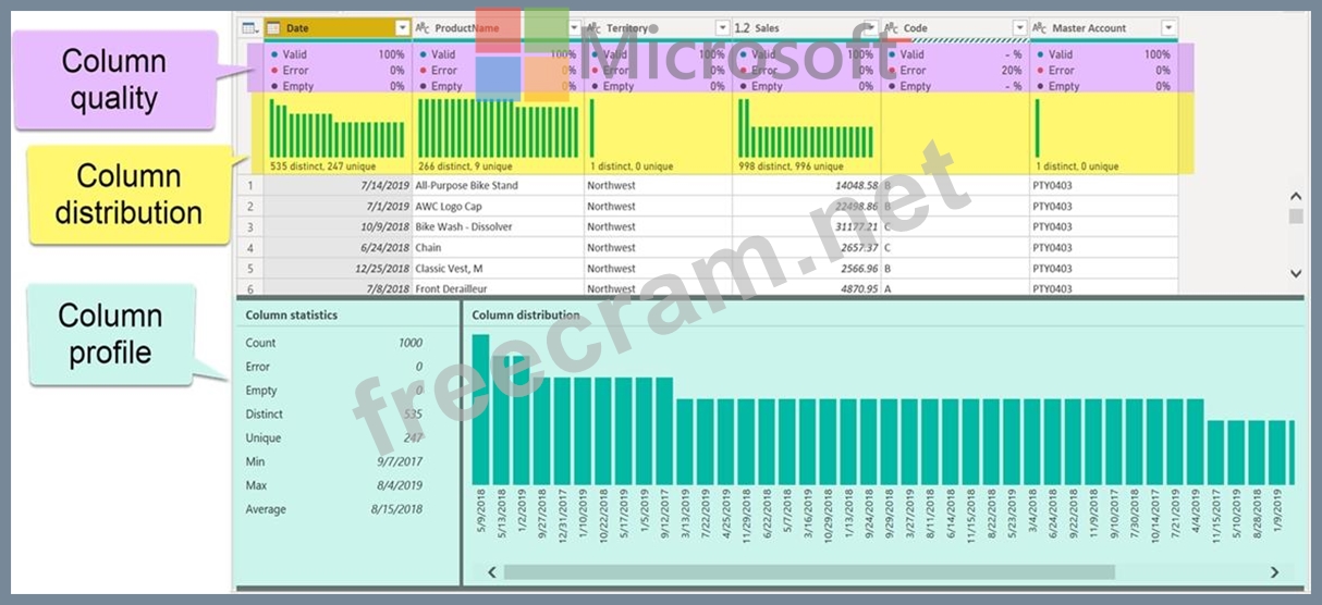 Data Profiling, Quality & Distribution in Power BI / Power Query features To enable these features, you need to go to the View tab a Data Preview Group a Check the following: