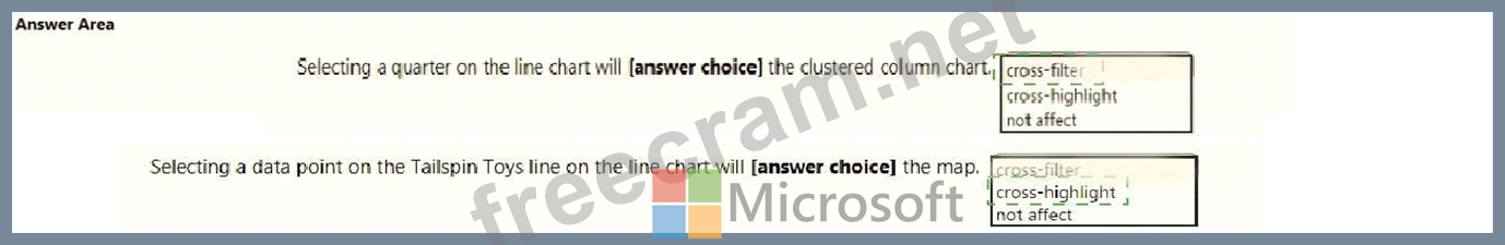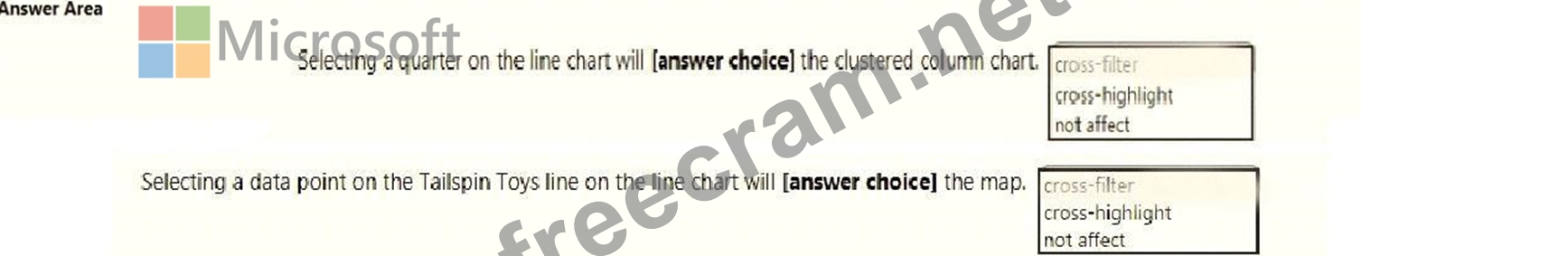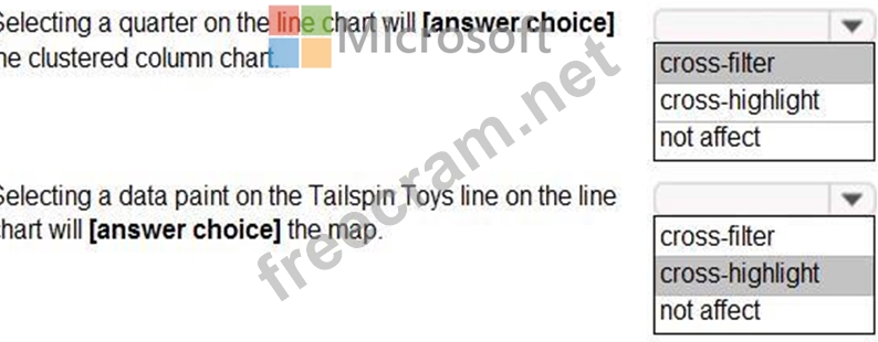 By default, selecting a data point in one visual on a report page will cross-filter or cross-highlight the other visuals on the page.