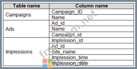 * Present ad impression counts for the day, campaign, and Site_name. The analytics for the last year are required.