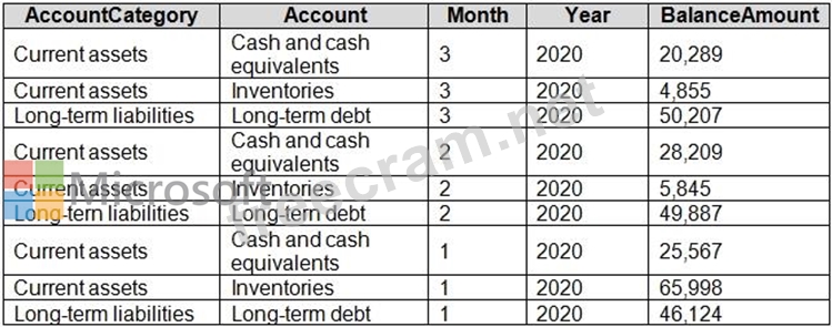 You plan to relate the balance sheet to a standard date table in Power Bl in a many-to-one relationship based on the last day of the month. At least one of the balance sheet reports in the quarterly reporting package must show the ending balances for the quarter, as well as for the previous quarter.