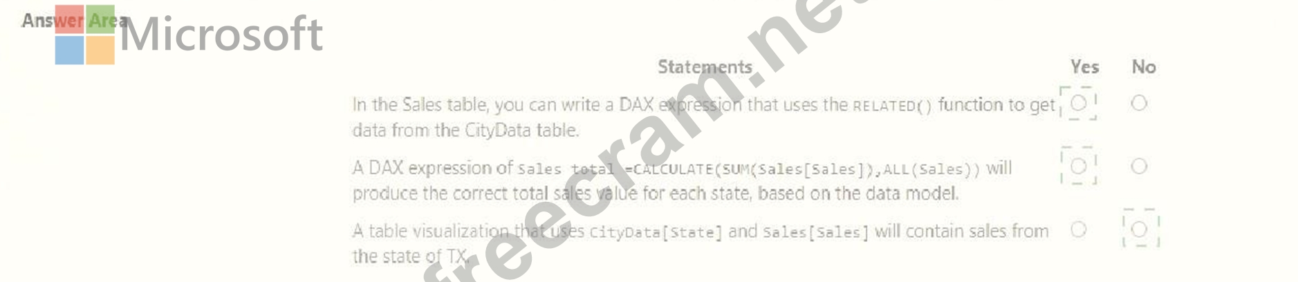 For each of the following statements, select Yes if the statement is true. Otherwise, select No.