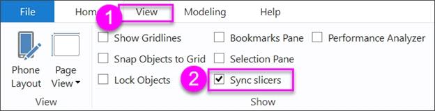 1. On the Power BI Desktop View menu, select Sync slicers.