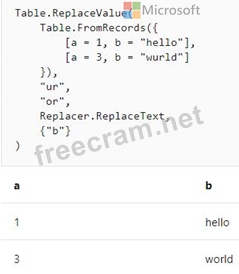 Example: Replace the text "ur" with the text "or" in the table. Reference: https://docs.microsoft.com/en-us/powerquery-m/table-replacevalue