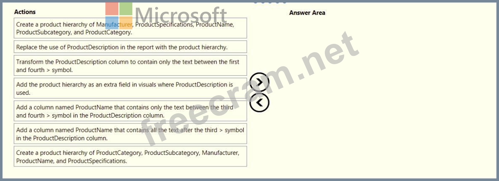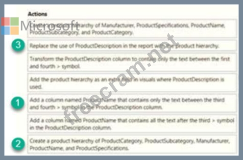 Warehouse managers report that it is difficult to use the report because the report uses only the product name in tables and visuals. The product name is contained within the ProductDescription column and is always the fourth value.