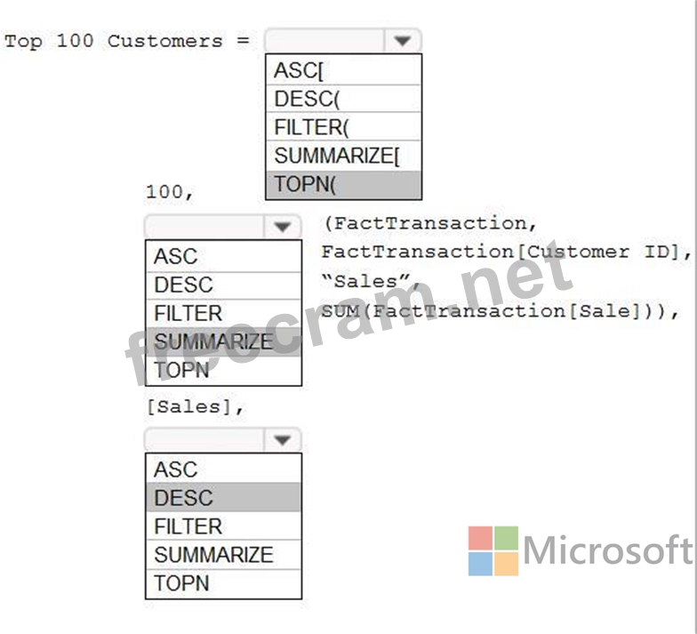 TOPN(<n_value>, <table>, <orderBy_expression>, [<order>[, <orderBy_expression>, [<order>]]...]) Reference: