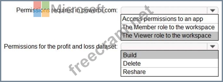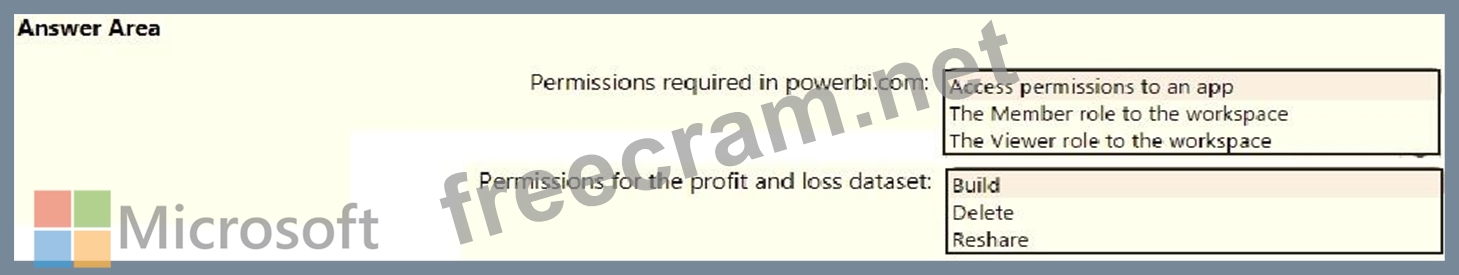 The analysts responsible for each business unit must see all the data the board sees, except the profit and loss data, which must be restricted to only their business unit's data. The analysts must be able to build new reports from the dataset that contains the profit and loss data, but any reports that the analysts build must not be included in the quarterly reports for the board. The analysts must not be able to share the quarterly reports with anyone.
