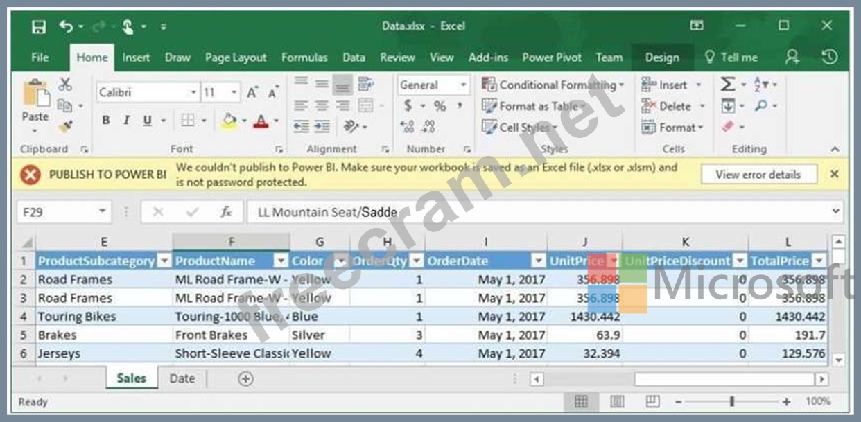 You attempt to publish a Microsoft Excel file to Power BI, and you receive the error message shown in the exhibit. (Click the Exhibit button.)