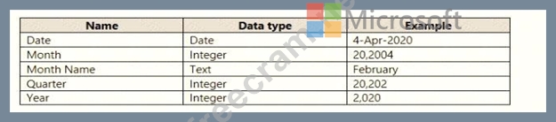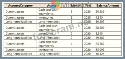 You plan to relate the balance sheet to a standard date table in Power Bl in a many-to-one relationship based on the last day of the month. At least one of the balance sheet reports in the quarterly reporting package must show the ending balances for the quarter, as well as for the previous quarter.