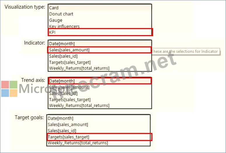 How should you create the visualization? To answer, select the appropriate options in the answer area.