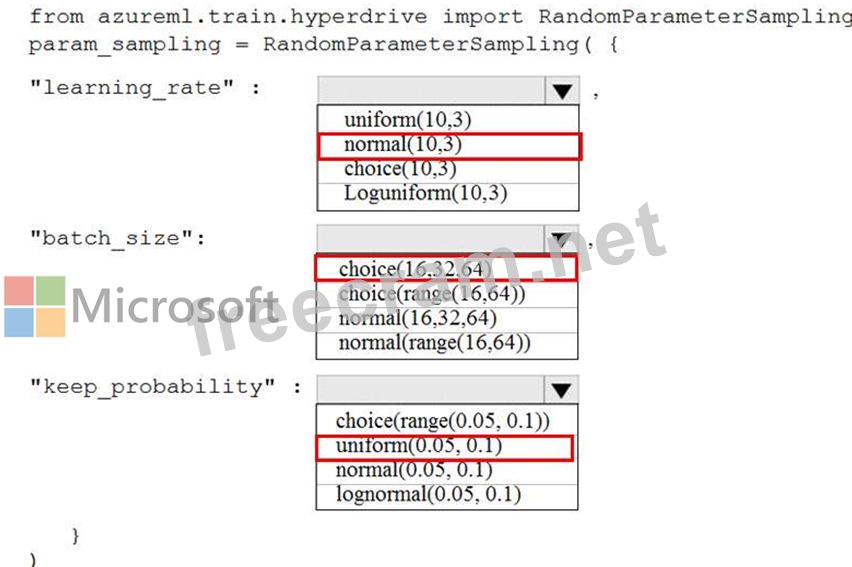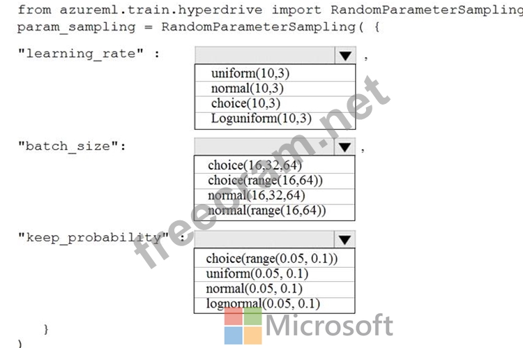 You must define the hyperparameter space to automatically tune hyperparameters using random sampling according to following requirements: