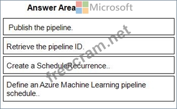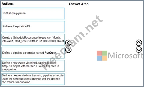 The model must be retrained monthly with the new image data fetched from a public web portal. You create an Azure Machine Learning pipeline to fetch new data, standardize the size of images, and retrain the model.