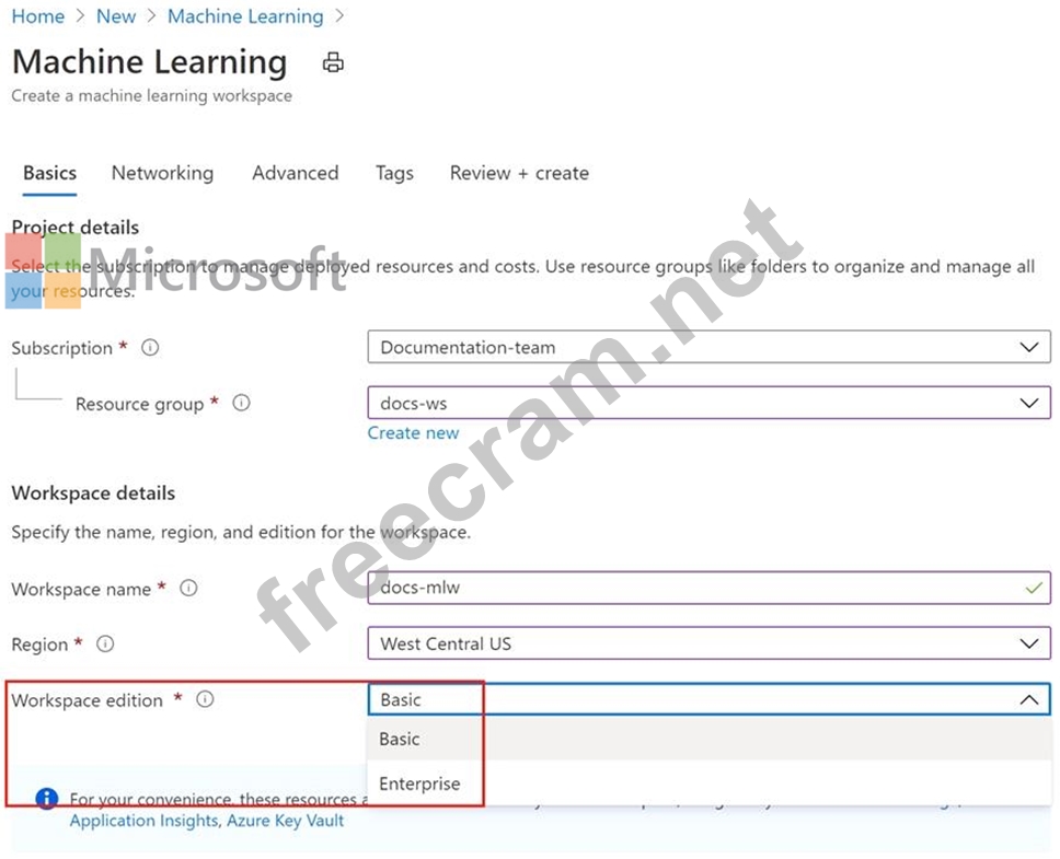 C: You can create a workspace for Azure Machine Learning with Azure CLI Install the machine learning extension.