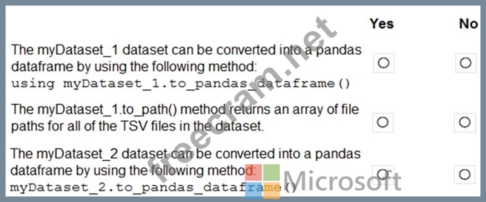 You plan to aggregate data for all of the TSV files together and then register the aggregated data as a dataset in an Azure Machine Learning workspace by using the Azure Machine Learning SDK for Python.