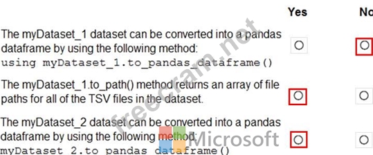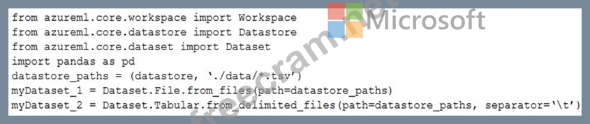 You have an Azure blob container that contains a set of TSV files. The Azure blob container is registered as a datastore for an Azure Machine Learning service workspace. Each TSV file uses the same data schema.