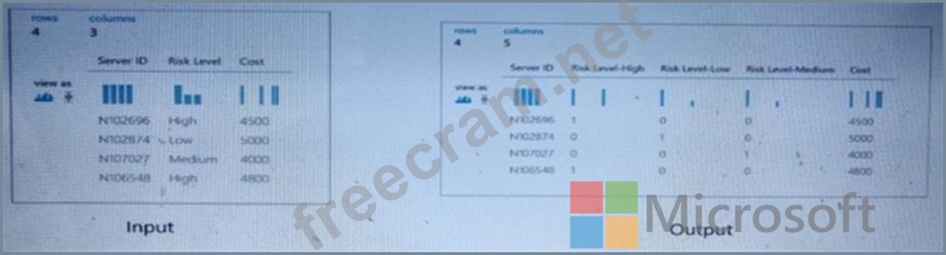 You are developing a machine learning, experiment by using Azure. The following images show the input and output of a machine learning experiment: