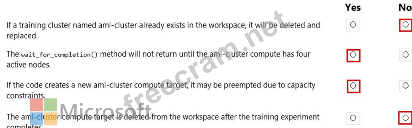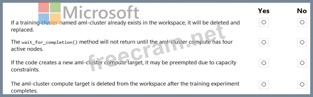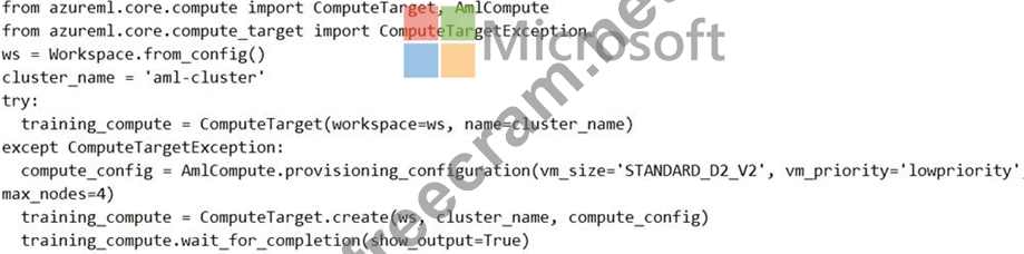 Question 53: You create an Azure Machine Learning compute target named Co...