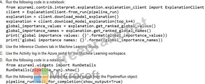 You create a batch inference pipeline by using the Azure ML SDK. You run the pipeline by using the following code: