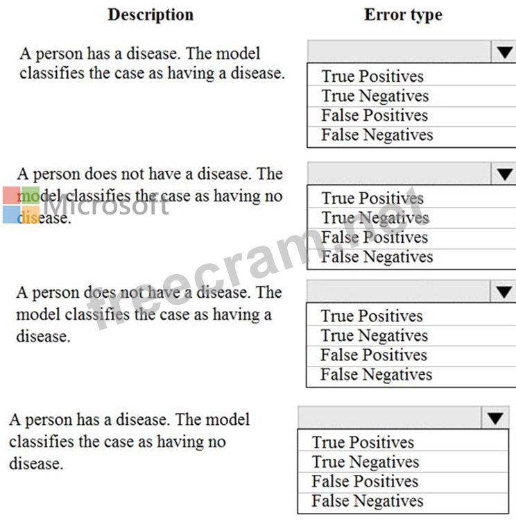 Which error type should you choose for each description? To answer, select the appropriate options in the answer area.