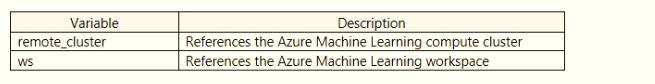 You register a file dataset named csvjolder that references a folder. The folder includes multiple com ma-separated values (CSV) files in an Azure storage blob container. You plan to use the following code to run a script that loads data from the file dataset. You create and instantiate the following variables: