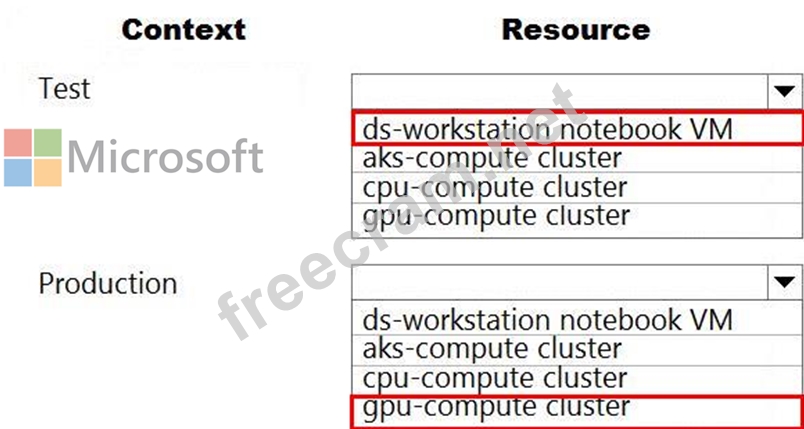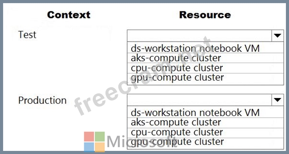 Which compute resources should you use? To answer, select the appropriate options in the answer area.