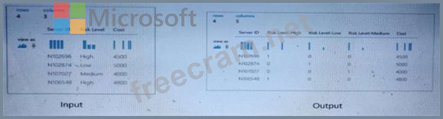 You are developing a machine learning, experiment by using Azure. The following images show the input and output of a machine learning experiment: