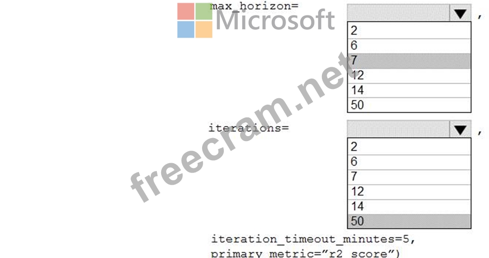 "For the initial round of training, you want to train a maximum of 50 different models." Iterations: The total number of different algorithm and parameter combinations to test during an automated ML experiment.