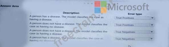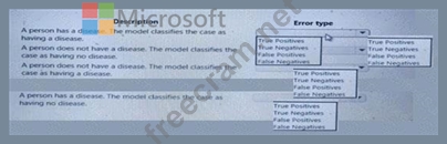 You create a binary classification model to predict whether a person has a disease. You need to detect possible classification errors.