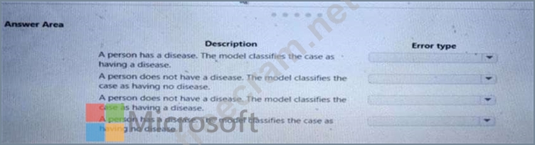 Which error type should you choose for each description? To answer, select the appropriate options in the answer area.