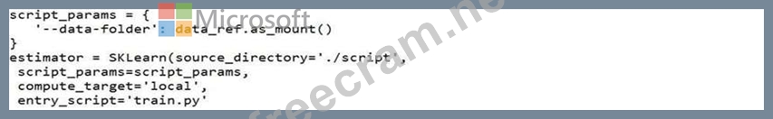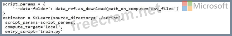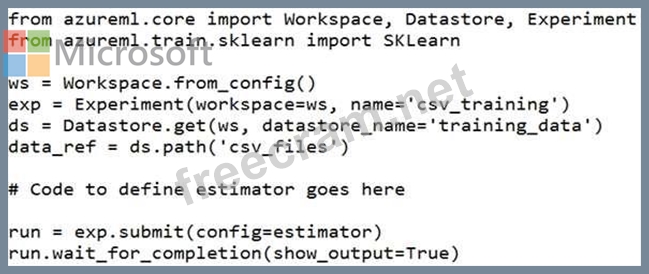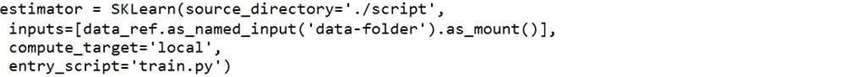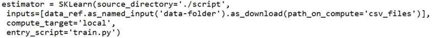 You need to configure the estimator for the experiment so that the script can read the data from a data reference named data_ref that references the csv_files folder in the training_data datastore.
