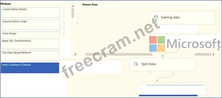 * Return only the Scored Labels column by using the query select [scored Labels] froh t1; Which modules should you use? To answer, drag the appropriate modules to the appropriate locations. Each module name may be used once, more than once, or not at all. You may need to drag the split bar between panes or scroll to view content