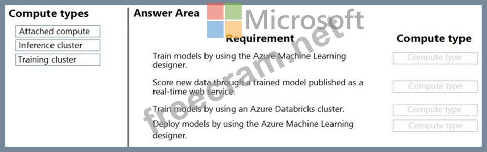Which compute types should you select? To answer, drag the appropriate compute types to the correct requirements. Each compute type may be used once, more than once, or not at all. You may need to drag the split bar between panes or scroll to view content.