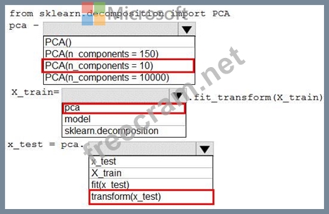 You need to apply the Principal Component Analysis (PCA) method to reduce the dimensionality of the feature set to 10 features in both training and testing sets.